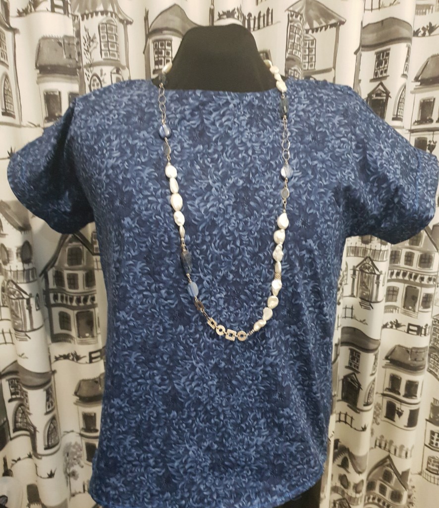 Blue 100% patchwork cotton made in three hours from The Bondi Top pattern adjusted to fit me. Easy!
