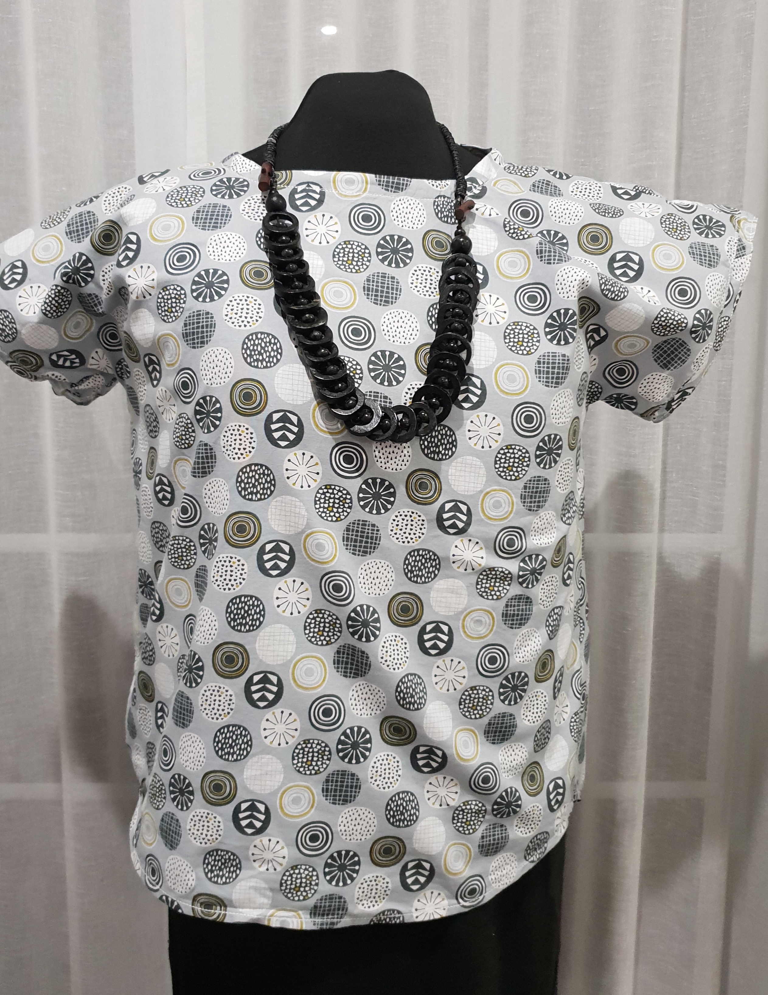 Tunic made with fabric from Woven Stories ( https://wovenstories.com.au/) which sources hand-printed cottons from small villages in India.