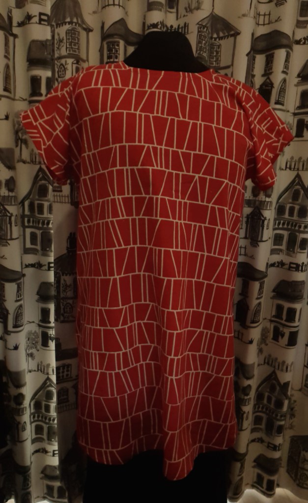 Another excellent patchwork cotton print.A longer line top made in a 100% linen. I turned the fabric around to avoid horizontal stripes and centred the black lines. The making was then easy using my already fitted master pattern.