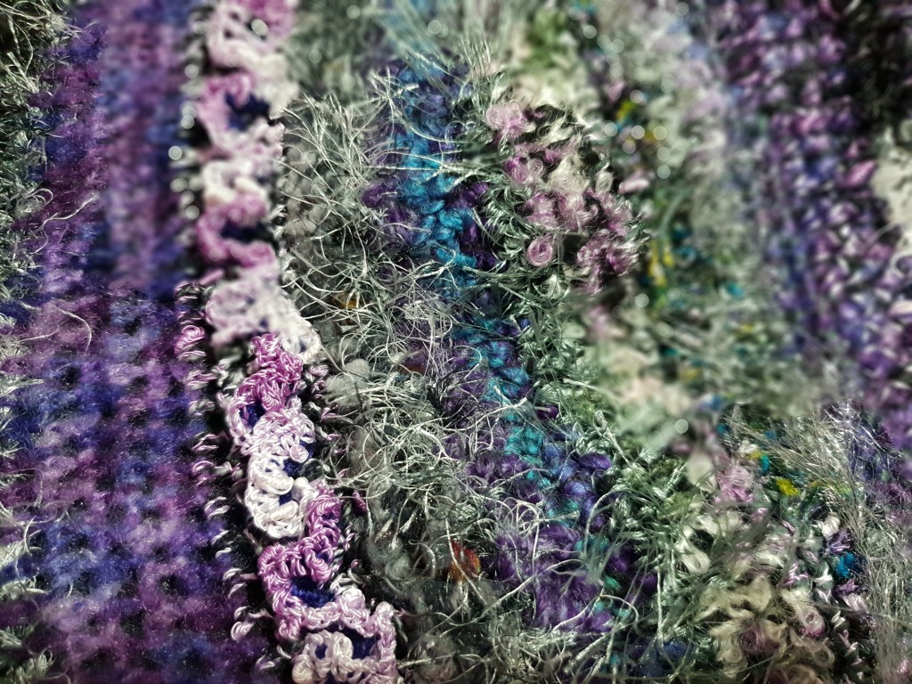 I’m probably not alone in having accumulated lots of the “novelty” yarns of the nineties and noughties. You know the kind: hairy, glitzy, chunky, loopy and often all these in the same ball!