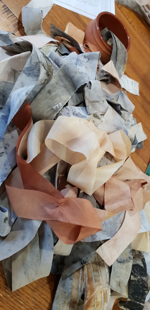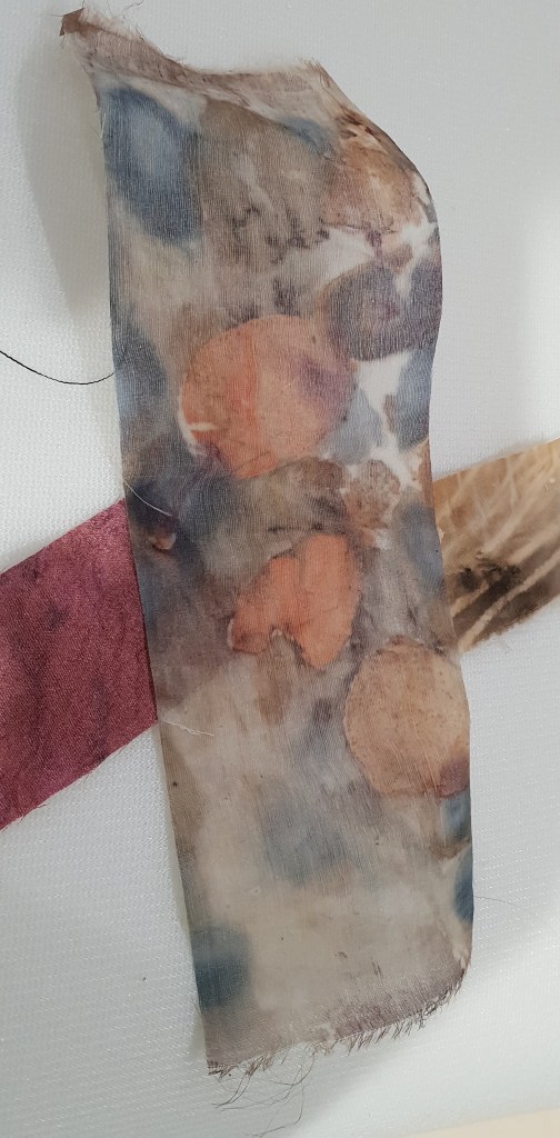 I cut strips of cotton and silk and some wool, all plant -printed.