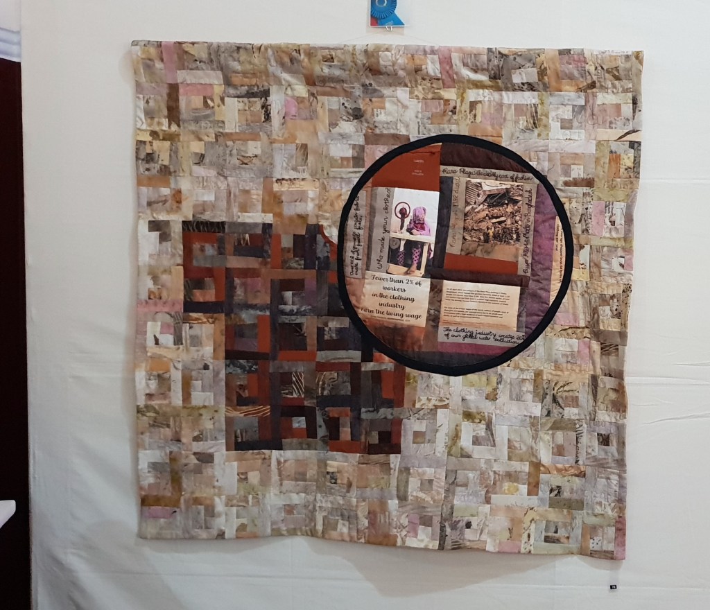 I’m glad I made the trip because I’d won the Textile and Fibre Art category. More importantly, I got to meet the two judges who were both very committed to the idea of art which engaged/informed and told a story. So “Who Made Your Clothes?” had resonated with them both and I’d won the blue ribbon for the textile category.