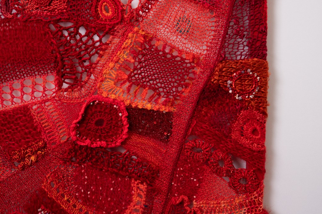 I have used three techniques: crocheting, knitting and hand-stitching. These traditional but marvellously adaptable tools enabled me to mix and blend colours in the way a painter does; to layer and place materials as a quilt maker does; to build shapes as a sculptor does; and to add surface embellishment as embroiderers do..