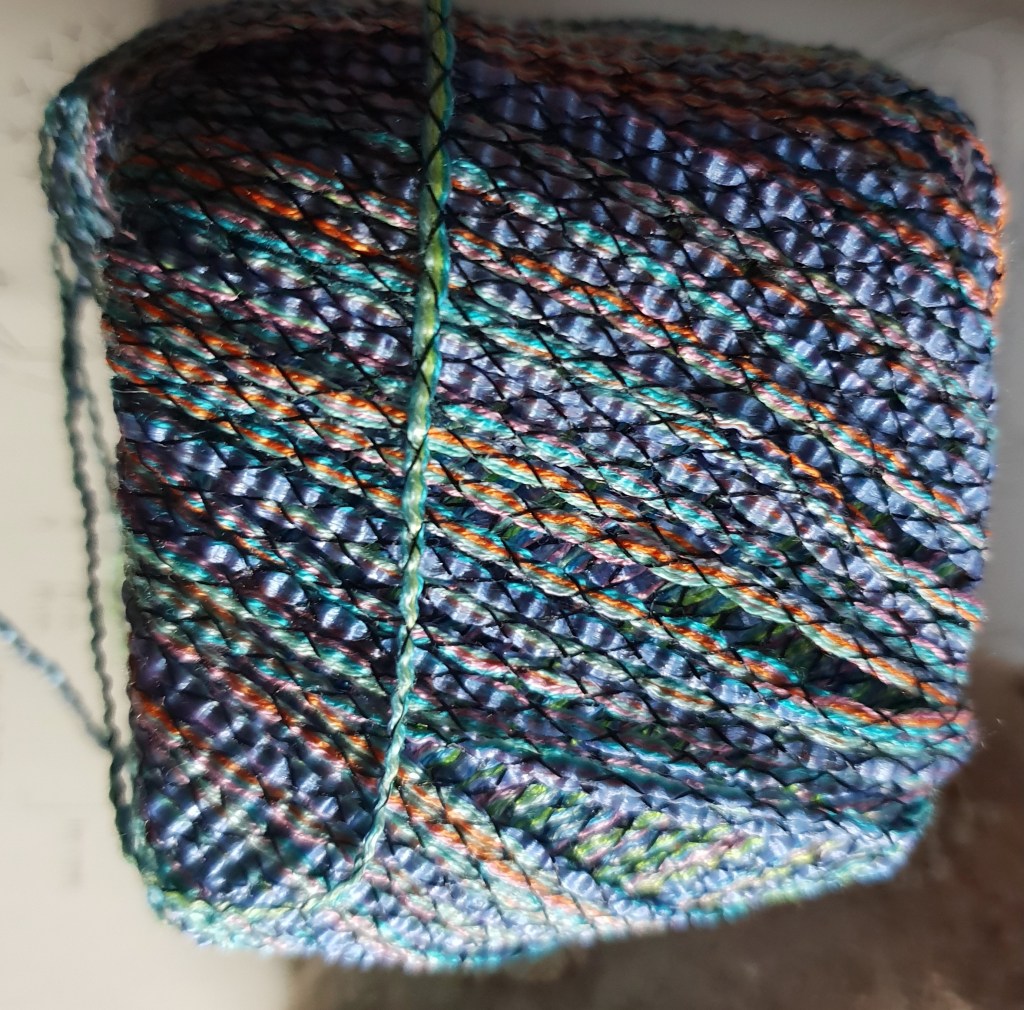 Last weekend I went to a fibre fair in a rural town. Although i love dyeing my own yarns, especially with plants, I couldn’t resist buying some skeins of 70:30 merino:silk yarn dyed by hand by the seller with what was described as “an eco-friendly acid dye”. [I have not researched this since the dyer could not recall the name of the product (!) and I’m guessing I might be disappointed at what I found – but then, I’m cynical]