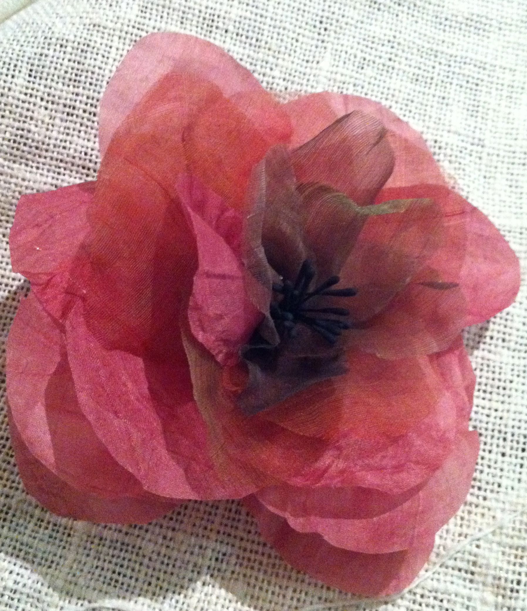 A rose made in a workshop from silk dyed and stiffened by Trudi Pollard and taught by Rose Crane from Gwendoline Grace and Gatsby Hats http://www.ggghats.com.au