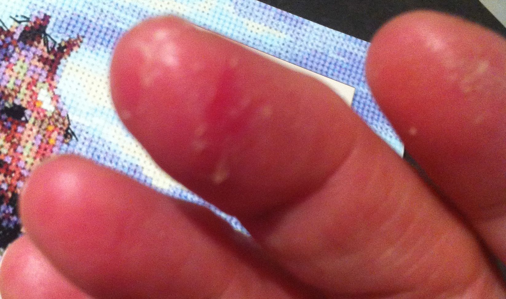 Only one more day to finish my Mysterium piece and these were my fingers last night!