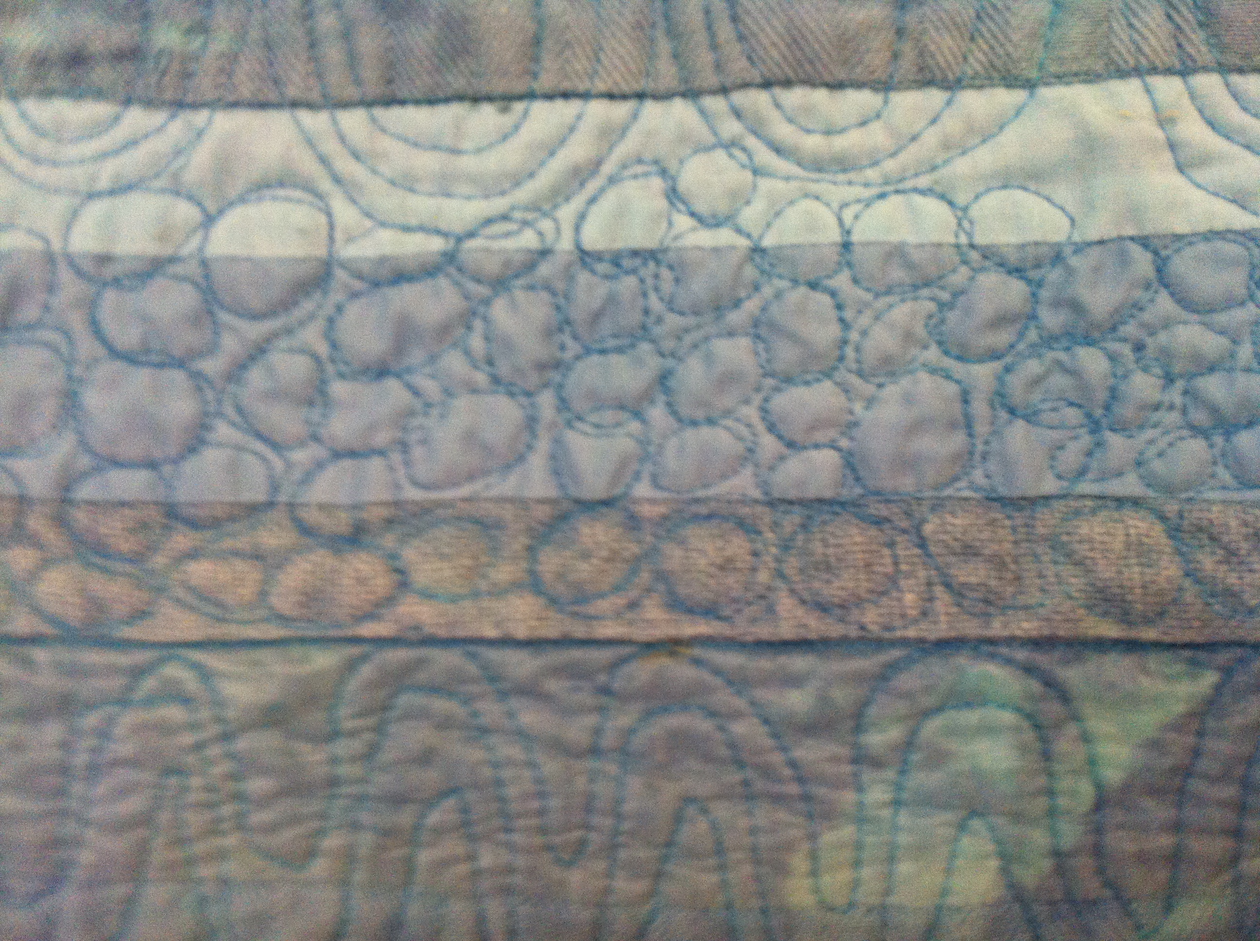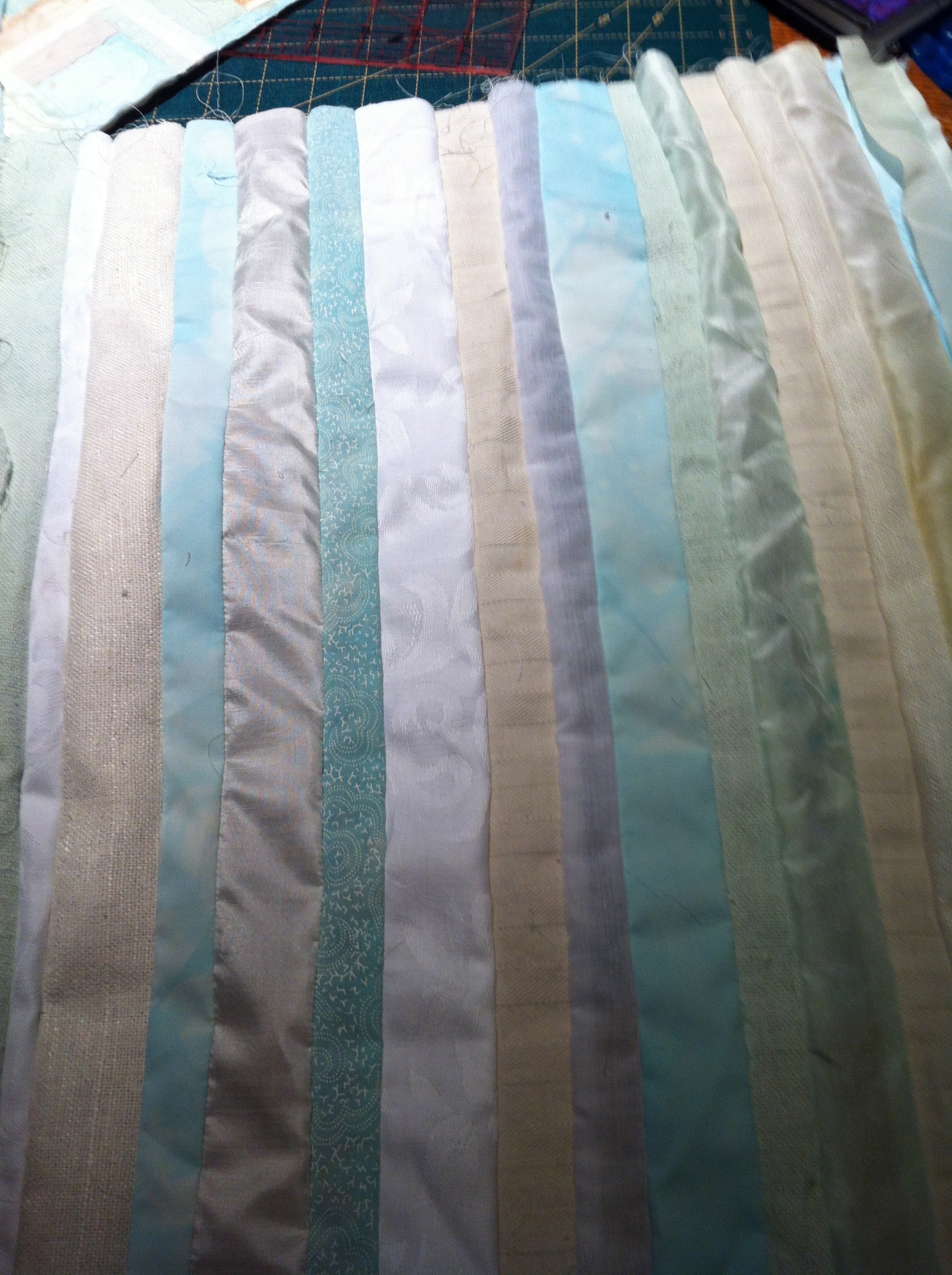 Some of the previously dyed strips mixed with new ones and pieced along their length