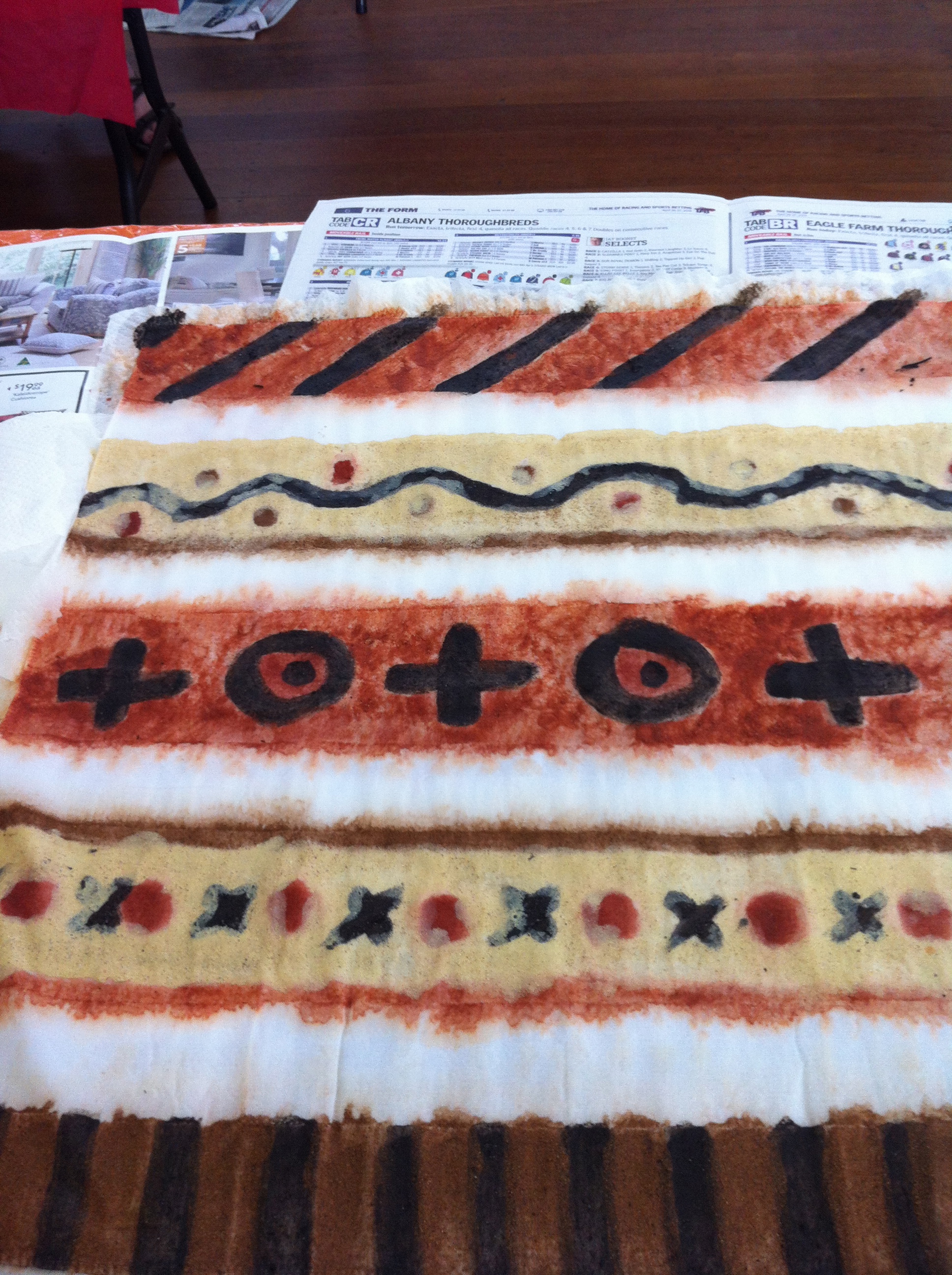 Well, today I had the chance to explore another form of “natural” dyeing. Mud Cloth, and ancient fabric patterning technique practised by women in the West African country of Mali.