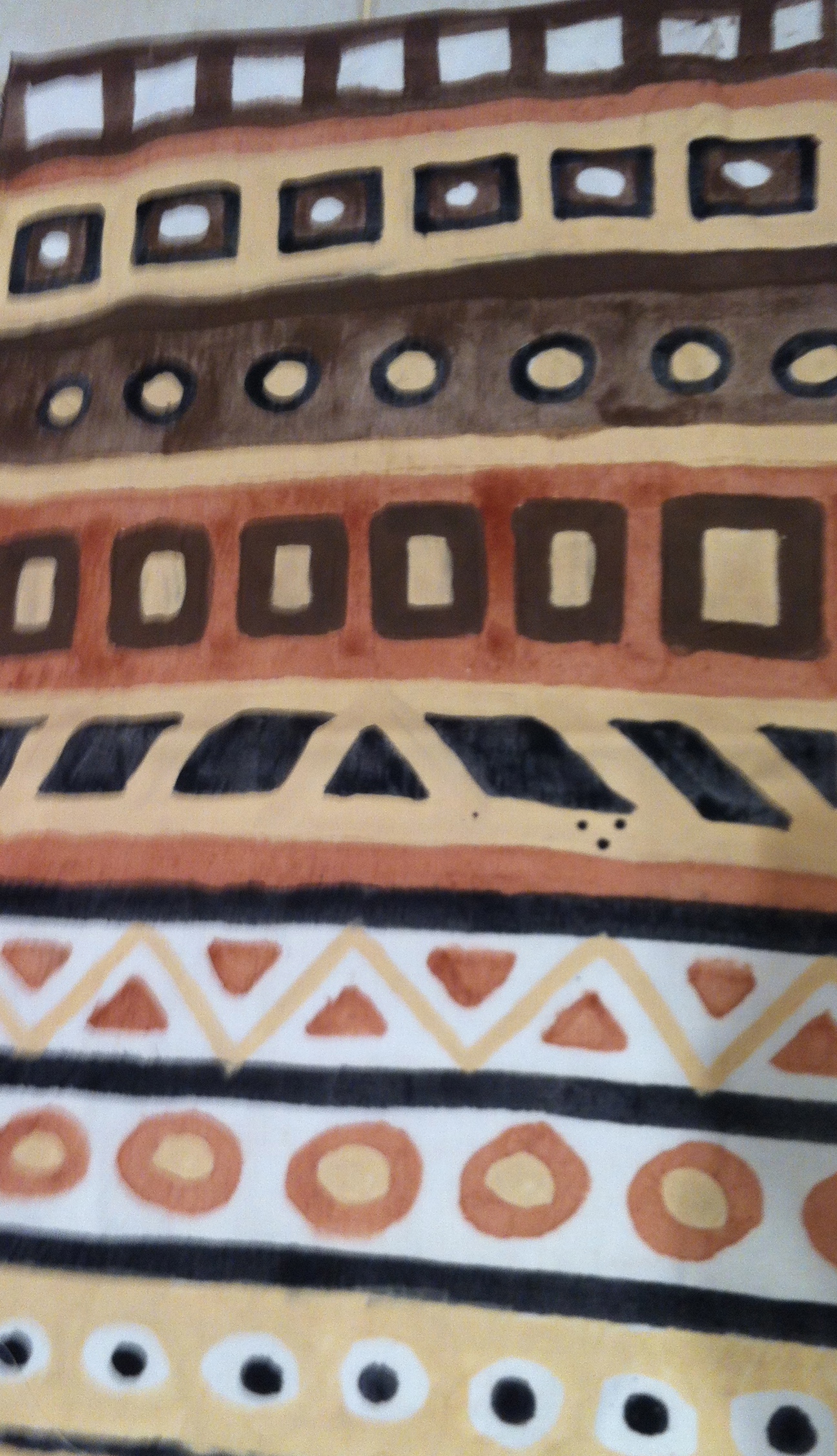 But today was the last day of the two day WAFTA workshop on Mud Cloth with Judy Dominic. (http://www.judydominic.com/mudcloth.html) Judy taught us a lot. She also frankly shared what she did not know…the secrets lying in the black mud of the River Niger (running through Mali) that mean we outside of that country can’t even hope to get the same effect; we can only approximate….