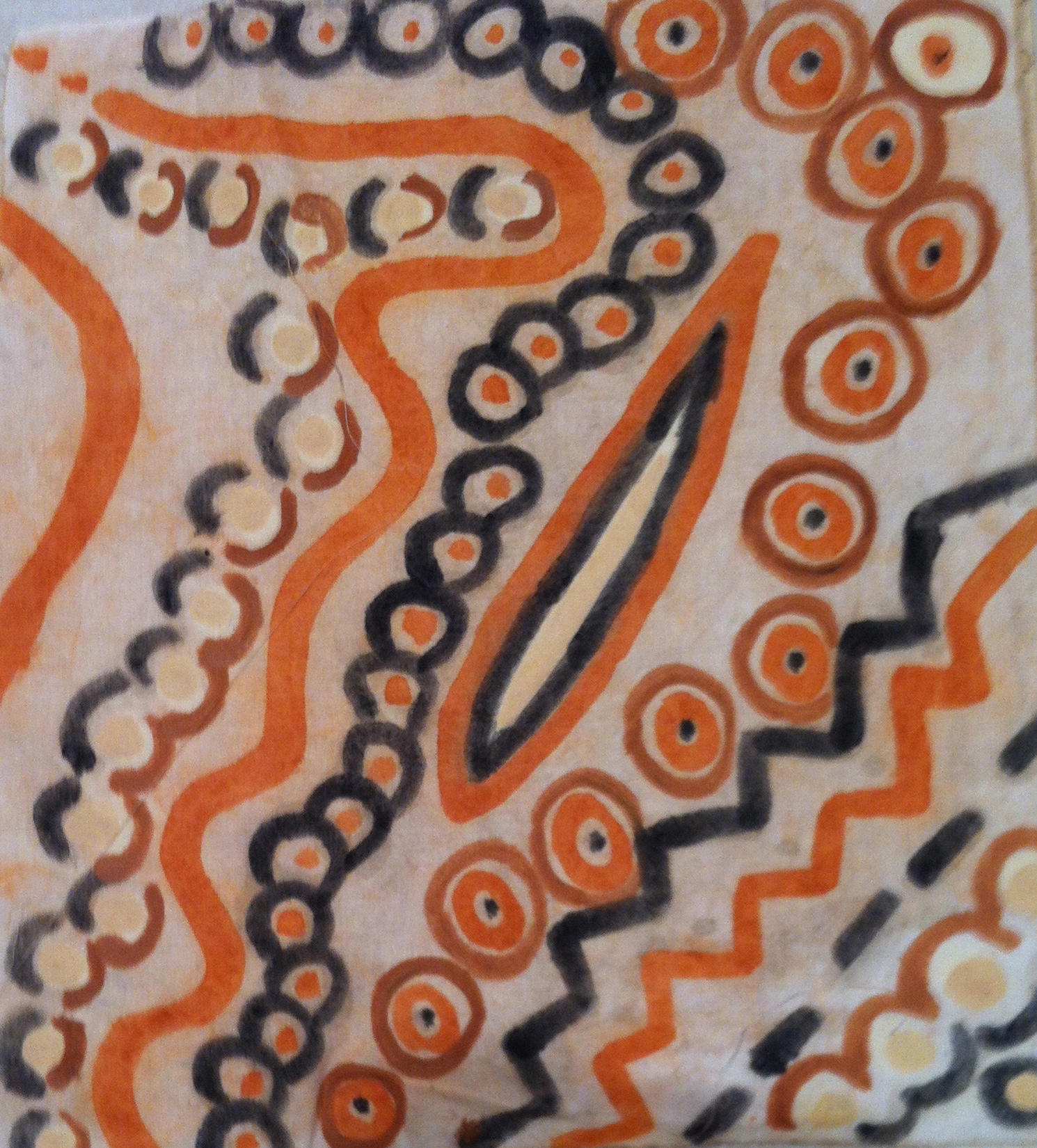Thirdly, there was a choice available to us in terms of getting an outcome. We could apply a “retention agent” to the reverse of our mud-painted fabric; or we could dry it and put it away for two weeks to 6 months to “cure”. I opted for a mixture. The immediate gratification of seeing the work after painting it with the retention agent. And the longer term “rewards” of putting the fabric away for 6 months. Which means I won’t have an outcome until October 2014!!