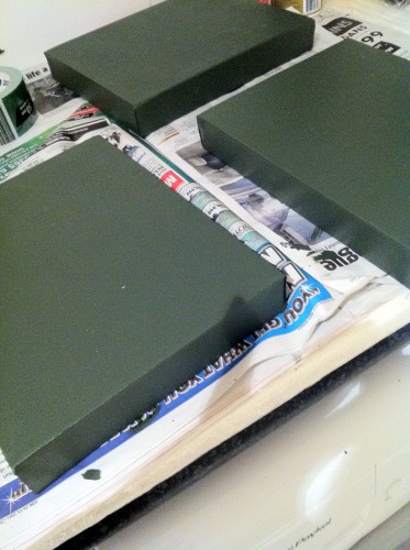 This has been a sunny weekend with warmth and clarity of light so I’ve worked outside on another leaf. I’ve also been applying successive coats of paint to more small canvases which will bear the “leaves”.