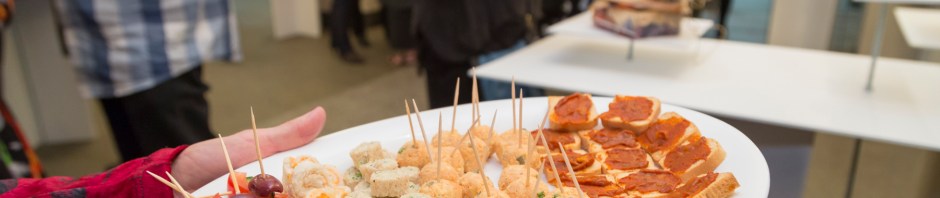 If your exhibition is aimed mainly at impressing gallery owners so you get future invitations to exhibit at their lovely galleries, it might not be necessary to serve anything. Busy “professional” exhibition goers are wanting to get in and out again quickly; it’s not as much a social event for them. (Apologies in advance if you are a gallery owner/manager who likes to linger over the food!)