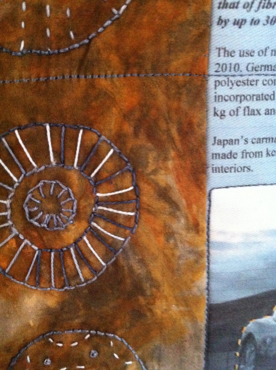In the end, I decided to make my piece in modules so it could be hung in a domestic setting (mine). It combined my love of natural dyeing with my urge to use text and told the story of the economic, health, industrial and agricultural issues around the production and use of fibres such as will, cotton, silk, sisal and bamboo.
